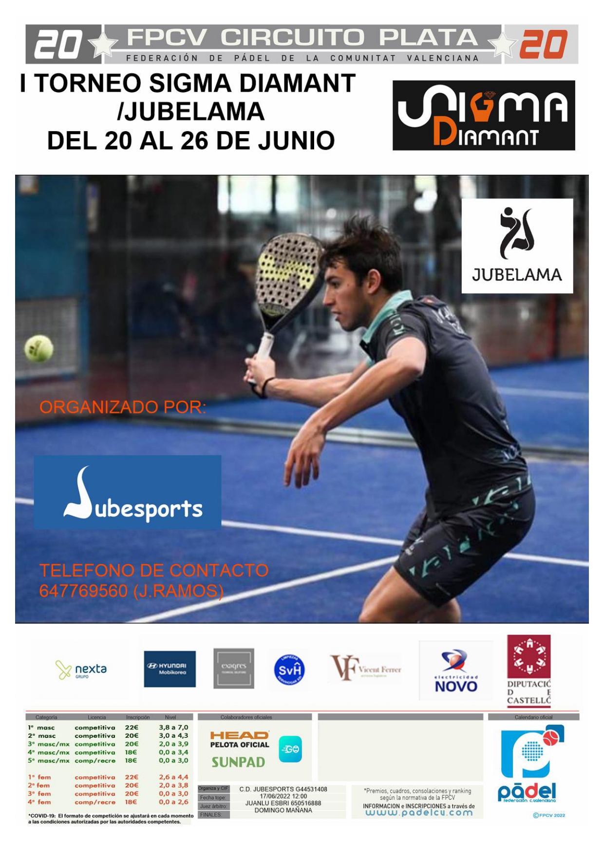 I TORNEO SIGMA DIAMANT JUBELEMA PLATA20Nº340 POLIGONO LA BASALA NAVE 124B12002, CASTELLÓ DE LA PLANA (CASTELLÓN)650516888jubelama@gmail.comFuente @padelcv...