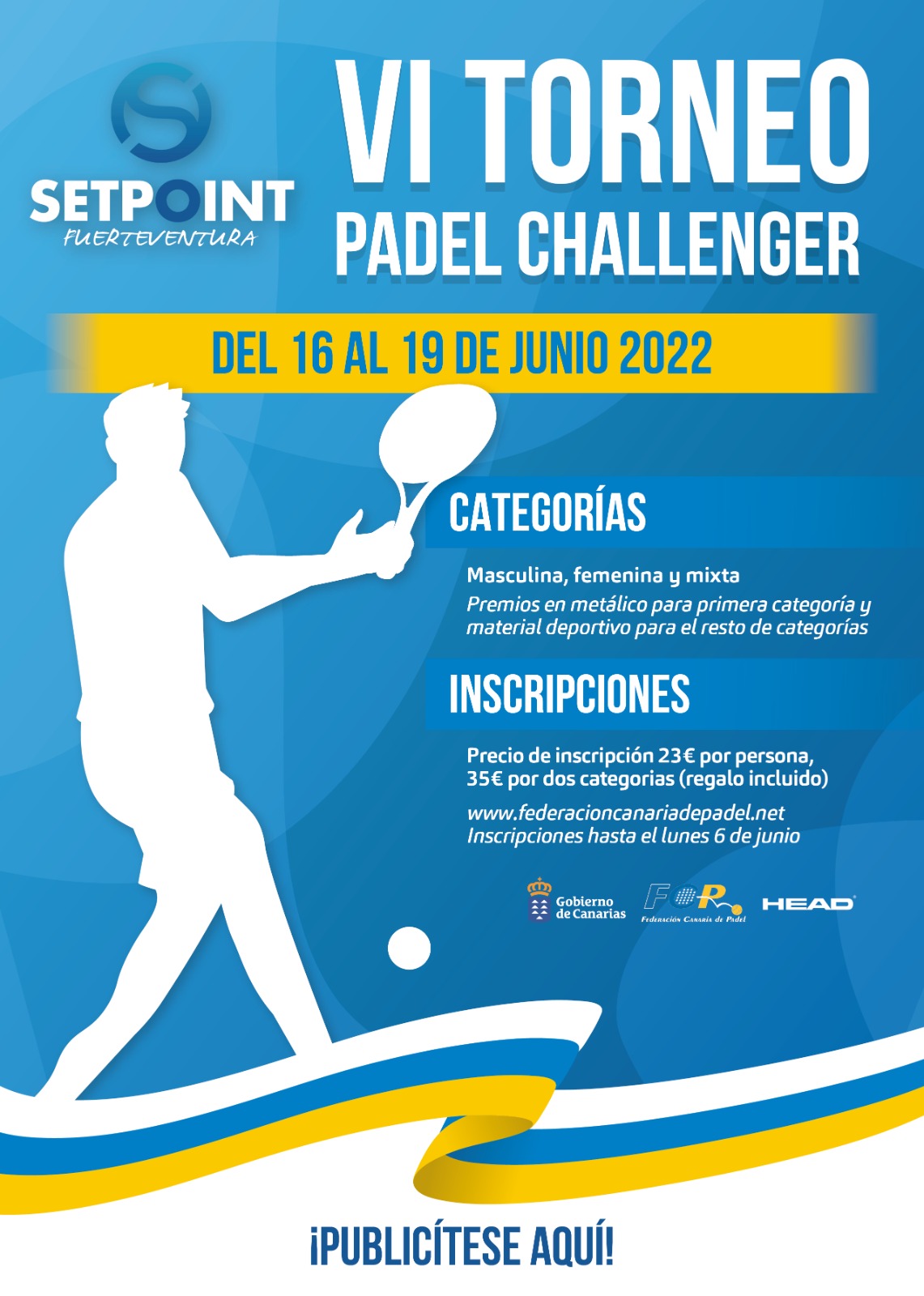 Condiciones Inscripción:.- Pueden participar todos/as aquellos/as jugadores/as que tengan tramitada su licencia federativa correctamenteRecordamos que para los Torneos ChallengerNo pueden participar los 20 primeros jugadores del ranking masculino , ni las 10 primeras jugadoras del ranking femenino, de la Federació...