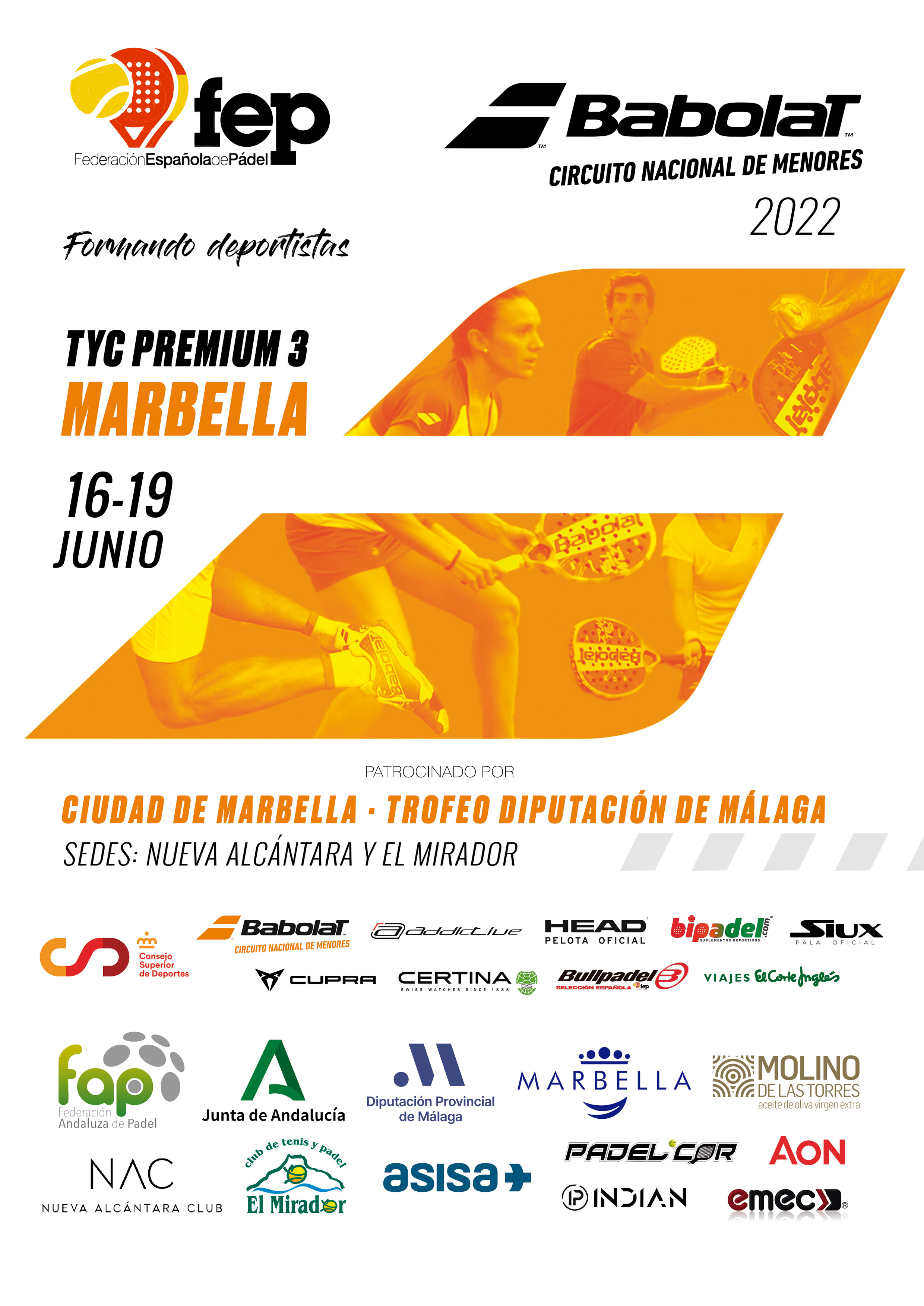 Tendrá lugar del 17 al 19 de junio en Nueva Alcántara Club (Marbella). TyC PREMIUM 3Información del torneoFecha Inicio: viernes, 17 de junio de 2022Fecha Final: domingo, 19 de junio de 2022Fecha tope inscripción: jueves, 9 de junio de 2022 - 12:00Datos Juez-Árbitro:Categ...